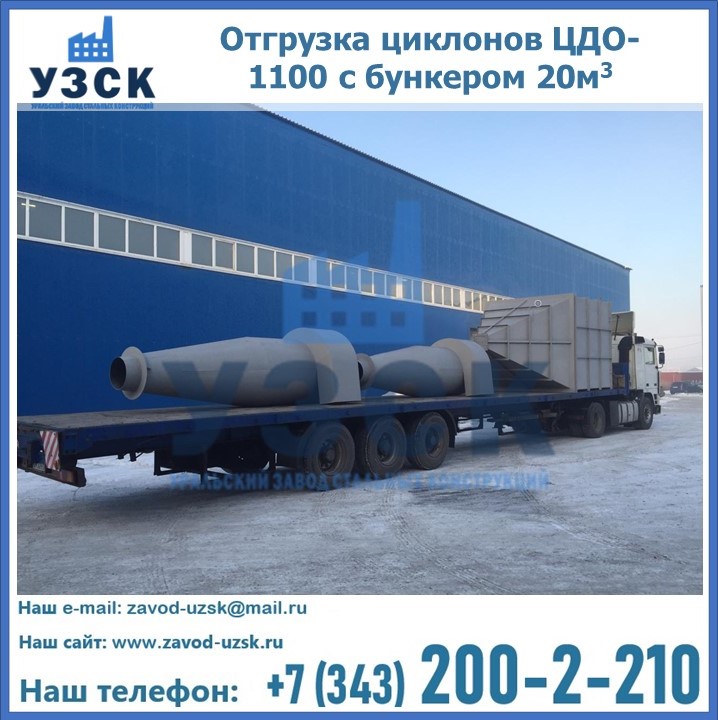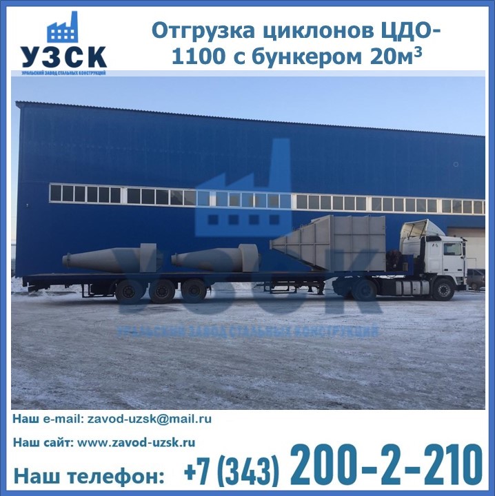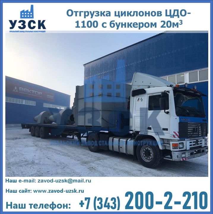 Циклоны ЦДО-1100 с бункером на 20 кубов были отгружены в декабре 2018 года в г. Новосибирск Томск.