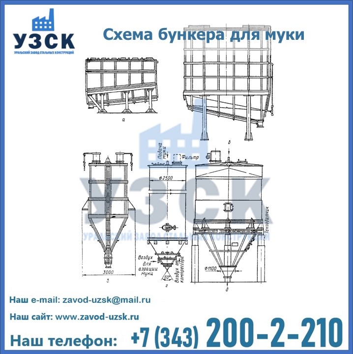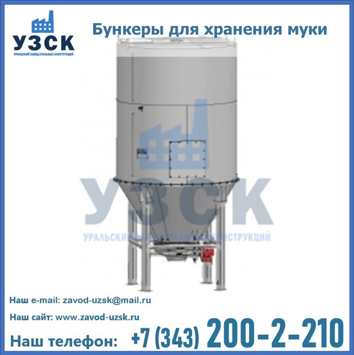 Завод «УЗСК» в Томске проектирует, производит и поставляет целевое оборудование, в том числе, бункеры для хранения муки и прочих сыпучих материалов.