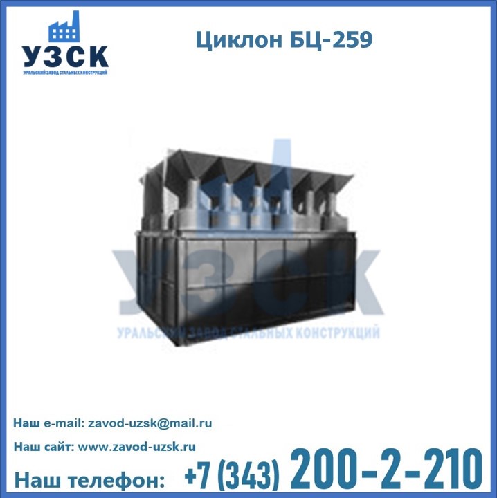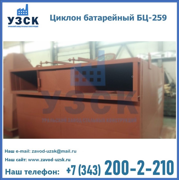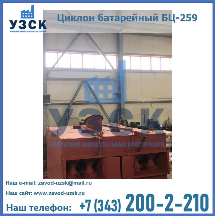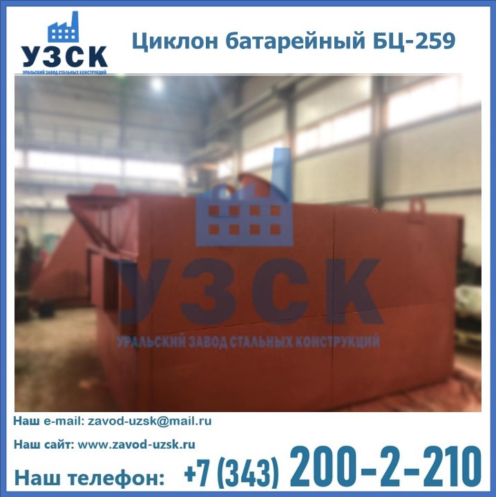Приобрести качественное оборудование, в том числе, циклоны БЦ-259, можно в компании УЗСК в Томске. Мы предлагаем долговечную и надежную продукцию по приемлемой цене. Заказать и купить циклоны или другие изделия высокого качества можно через сайт Уральского Завода Стальных Конструкций, или позвонив по указанному в разделе «Контакты» телефону.