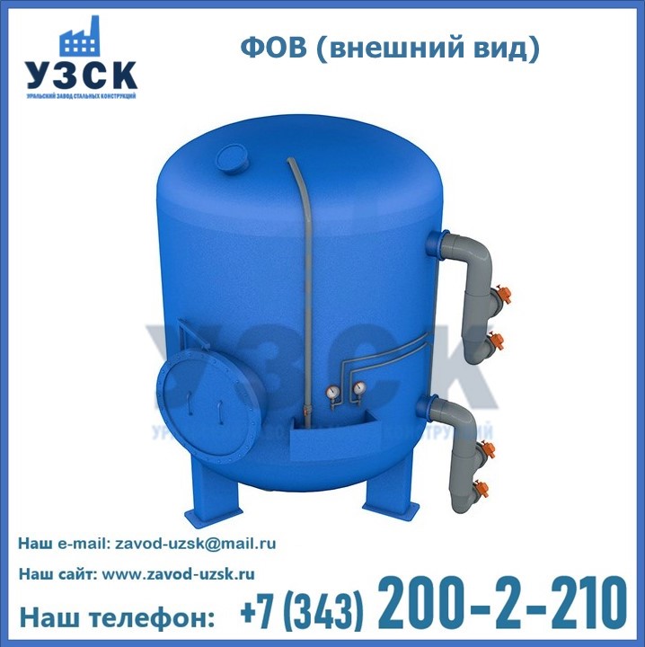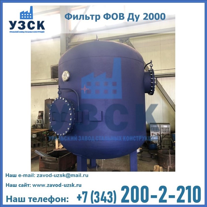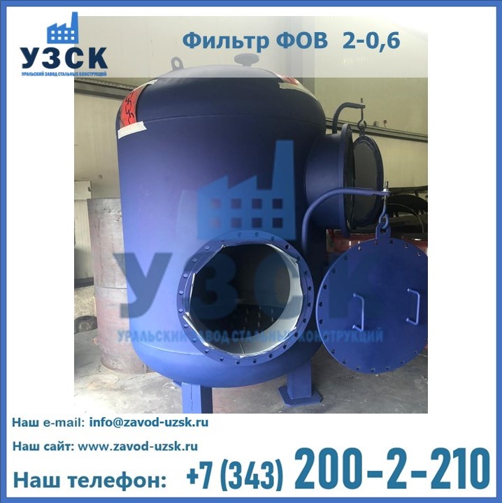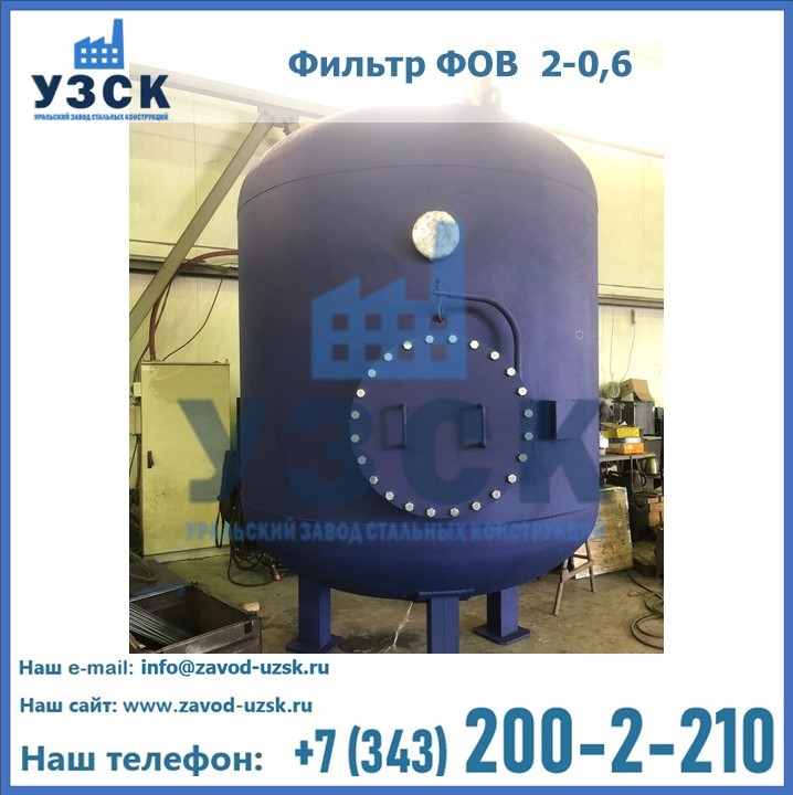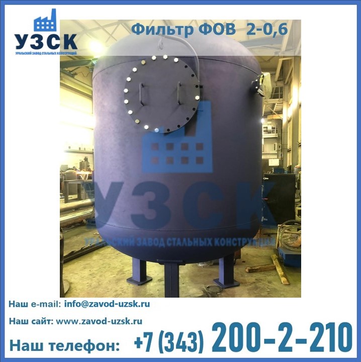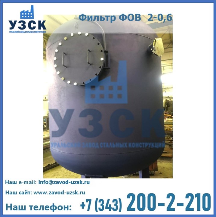 Удаление взвешенных веществ различного уровня дисперсности из рабочих жидкостей эффективно проводит фильтр осветлительный типа ФОВ (скорый или механический) — вертикально-цилиндрической формы установка, разработанная для систем водоподготовки различного класса. Оборудование представляет собой однокамерный агрегат для очистки воды рекомендованный для применения на станциях очистки стоков, в коммунальных котельных, на ТЭЦ, в промышленных отопительных системах и пр. Заказать производство ФОВ фильтров предлагает наш Уральский завод стальных конструкций в Томске. У нас можно купить фильтрационное оборудование различного класса и типа, в том числе фильтры ФОВ из нержавеющей стали.