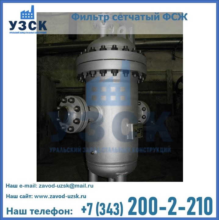 Очистку перекачиваемых жидкостей на предприятиях нефтяной, пищевой, горнорудной, фармацевтической и других отраслей промышленности эффективно выполнять с помощью жидкостного сетчатого фильтра — емкостное оборудование цилиндрической формы со съемной крышкой и элементом фильтрации внутри. Оснащенные им всасывающие линии насосных станций и установок защищены от проникновения твердых частиц в функциональные узлы гидравлической системы. Оборудование служит для перекачивания токсичных, агрессивных и иных эмульсий, суспензий, жидкостей. Купить фильтр сетчатый жидкостный ФСЖ в Томске с гарантией производителя предлагает «Уральский завод стальных конструкций». Мы выполняем проектирование и изготовление ФСЖ по индивидуальным требованиям (климатическая зона, транспортируемая жидкость).